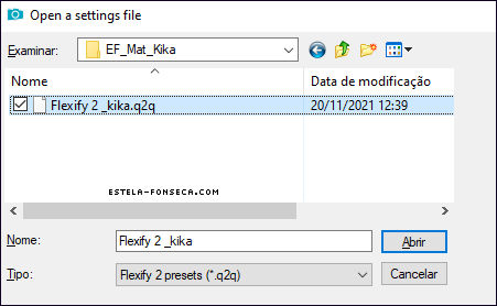 09- Effects / Plugins / Flaming Pear / Flexify 2 (Clique na seta Vermelha e localize na pasta do material o preset <<Flexify2_kika>>