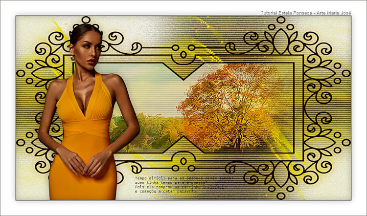 09- Effects / 3D Effects / Drop Shadow: 0 / 0 / 50 / 30 / Cor 3 (#d29c00) 10- Abra o tube da Personagem <<Jeanne_Woman_SummerFashion_09_07_2021 >> Copie e Cole como nova layer Image / Resize / 75%... Resize All Layers ... Desmarcado Posicione como preferir Effects / 3D Effects / Drop Shadoe: 0 / 0 / 30 / 30 / #000000