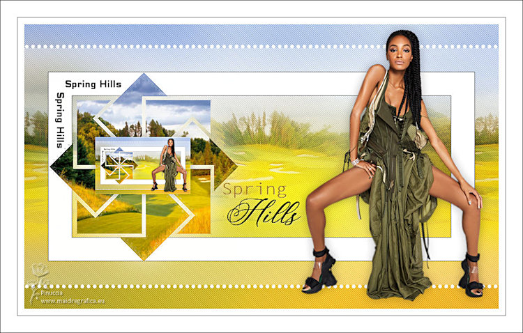13-Effects / 3D Effects / Drop Shadow: 0 / 0 / 100 / 100/ Cor Branca Ative o << EF_SpringHills_Deco-2>> Copie e Cole como nova layer Image / Negative Image
