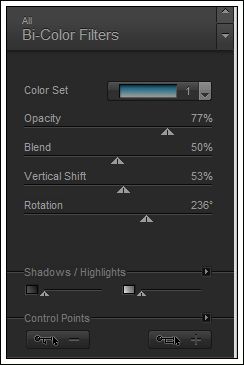 14- Effects / Plugin / Alien Skin Eye Candy 5: Impact / Motion Trail/Preset fantasia6motiontrail_aliciar.15- Effects / Plugin / Nik Software/Color Efex Pro 3,0 Complete/ Bi-Color Filters. Cool Warm 1