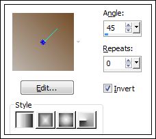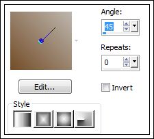 1. Abra uma nova imagem transparente de 750/450 Pixels.Forme um Gradiente estilo Linear angle 45 / Repeats 0