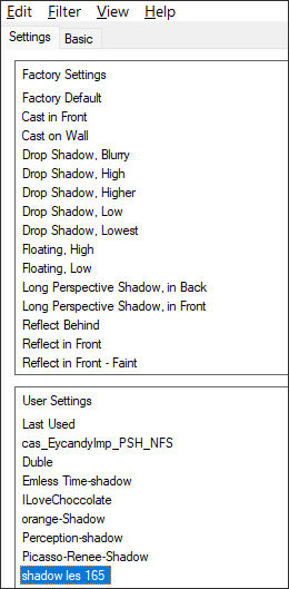 Effects / Plugins / Alien Skin Eye Candy 5 / Impact / Perspective Shadow : shadow les 165