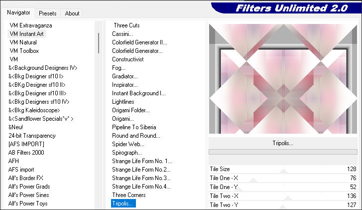 13. Effects / Plugins / Filters Unlimited 2.0 / VM Instant Art / Tripolis...Default.