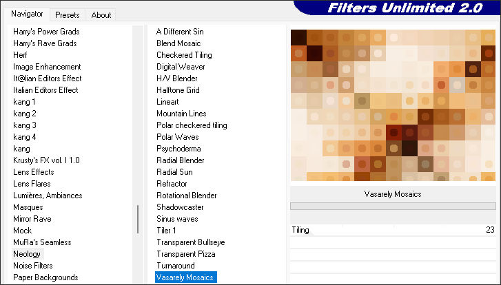7. Effects / Plugins / Filters Unlimited 2.0 / Neology / Vasarely Mosaics:
