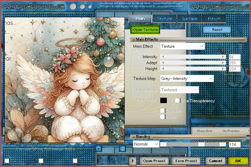36. Effects / Plugins / The Plugin Site / HyperTyle: Click em Open Texture