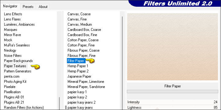 5. Effects / Plugins / Filters Unlimited 2.0 / Paper Textures / Filter Paper: