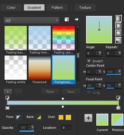 Forme no Primeiro Plano um gradiente estilo Linear e configure como segue: