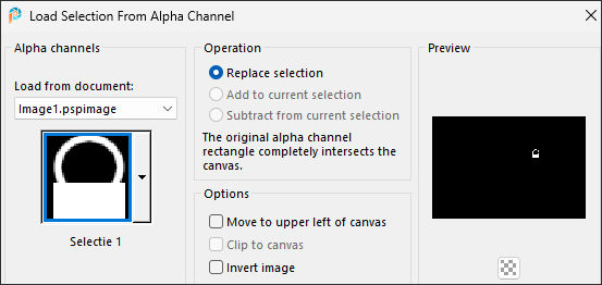 Selections / Load/Save Selection / Load Selection From Alpha Channel: Selectie 1