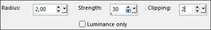 24. Ative a layer do Topo (Copy of Raster 7)Adjust / Sharpness / Unsharp Mask : 2 – 30 – 2 – sem marcas de verificação