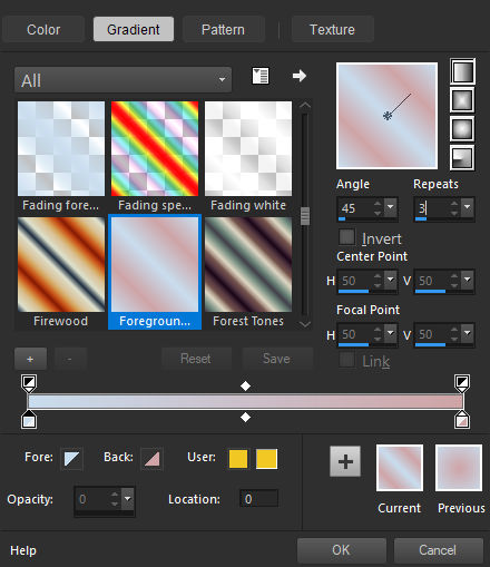Primeiro Plano cor#2 / Plano de Fundo cor #3Forme no Primeiro Plano um Greadiente Linear e configure como na imagem abaixo: