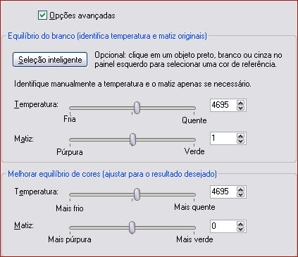 Adjust / Equilibrio de cores/ clique em opções avançadas: