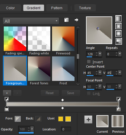 2. Forme no primeiro plano um gradiente Radial configure como segue: