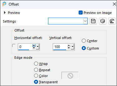 7- Effects / Image Effects / Offset: H: 0 / V: 100 /Custom / Transparent...Marcado