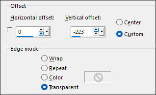 11- Effects / Image Effects / Offset: H: 0 / V: -223 / Custom / Transparent ... Marcado.