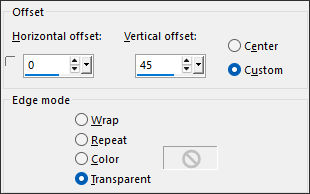 14- Abra o tube «Yoshiko Deco 5 by mpd©» Copie e cole como nova layer.15- Effects / Image Effects / Offset: H: 0 / V: 45 / Custom / Transparent ...Marcado.