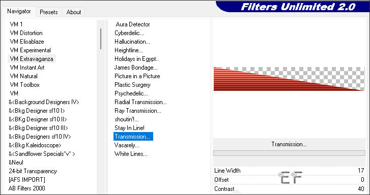 4. Effects / Plugins / Filters Unlimited 2.0 / VM Extravaganza/Transmission: 17 / 0 / 40