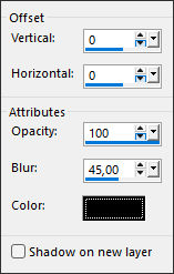 45- Selections / Invert46- Effects / 3D Effects / Drop Shadow: 0/0/100/45 cor #000000
