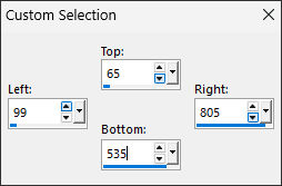 4- Selection (S) Rectangle / Custom Selection: Top 65/Left 99/Right 805/Bottom 535
