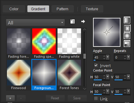 Forme no primeiro plano um Gradiente - Rectangular – Configure como segue: