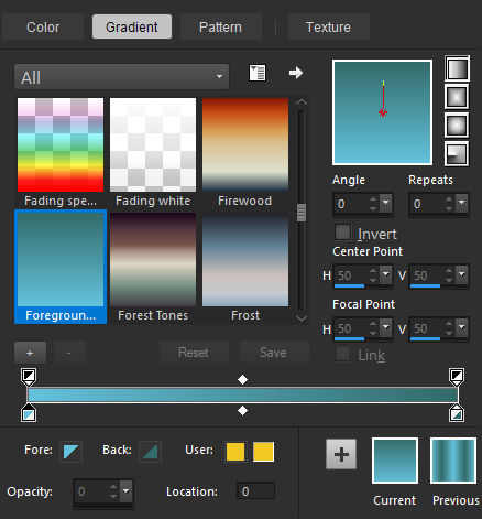 Primeiro Plano cor 1 / Plano de Fundo cor 2Prepare um Gradiente Linear no Primeiro Plano e configure como segue: