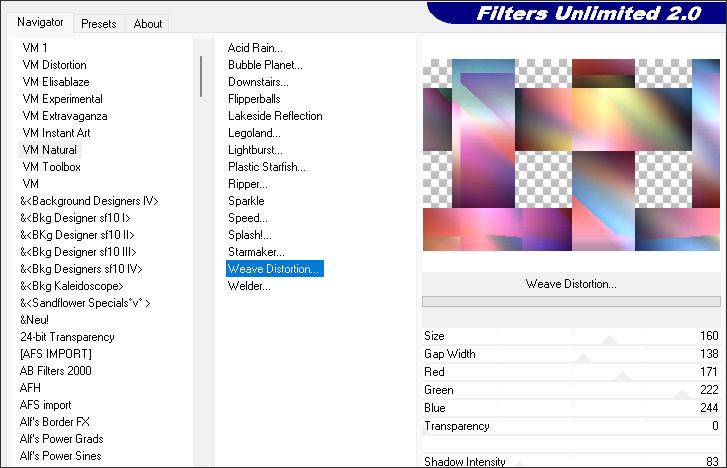 20. Effects / Plugins / VM Natural / Weave Distortion