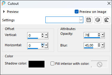 Selections / Invert30. Effects / 3D Effects / Cutout...