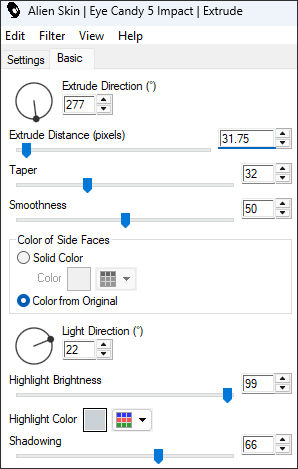 33. Effects / Plugins / Alien Skin Eye Candy 5 / Impact / Extrude ... Preset : «Plusieurs-visages-extrude»