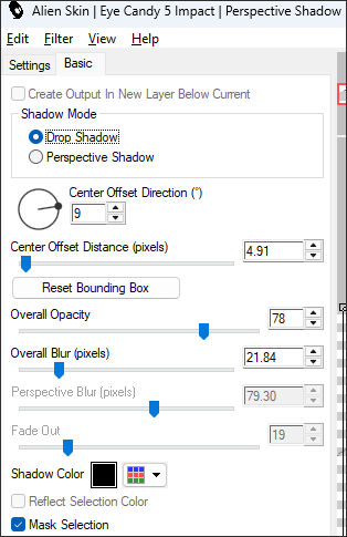 44. Effects / Plugins / Alien Skin Eye Candy 5 / Impact / Perspective Shadow