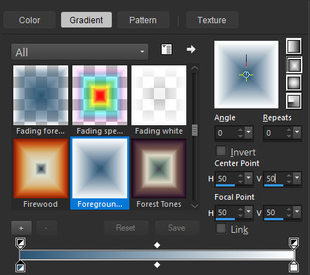 Estilos e Texturas ... Prepare um Gradiente ... Rectangular e configure como segue: