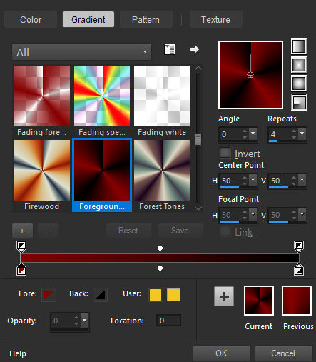 Forme no Primeiro Plano um gradiente Radial configure como segue: