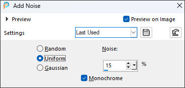 12- Effects / Plugins / Simple / Left Right Wrap Blend Mode / Soft Light Adjust / Sharpness / Sharpen More Adjust / Add Remove Noise / Add Noise: