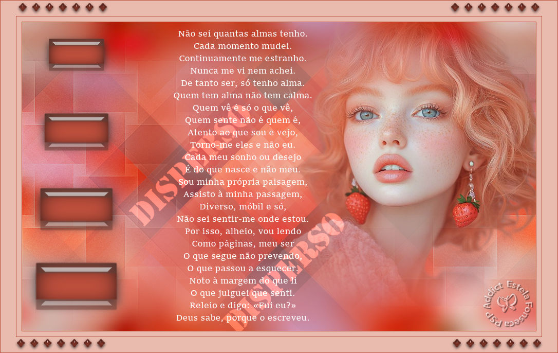 Material Necessário: Tube de LB Tubes Tube Misted de EF (Imagem de Pinterest) Mask 2020 Demais materiais criados especialmente para este trabalho. Poesia de Fernando Pessoa