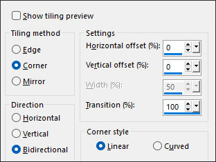 Effects / Image Effects / Seamless Tiling: (corner/Horizontal/0 /100)