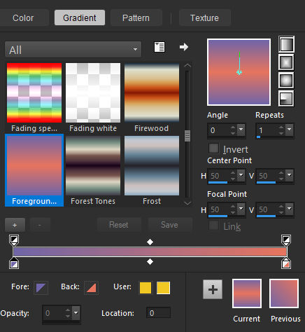Forme no Primeiro Plano um gradiente estilo «LINEAR» configure como segue: