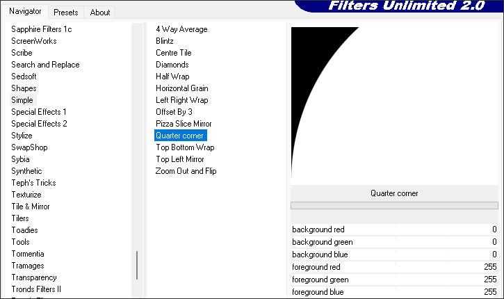 16. Effects / Plugins / Filters Unlimited 2.0 / Simple / Quarter Corner: