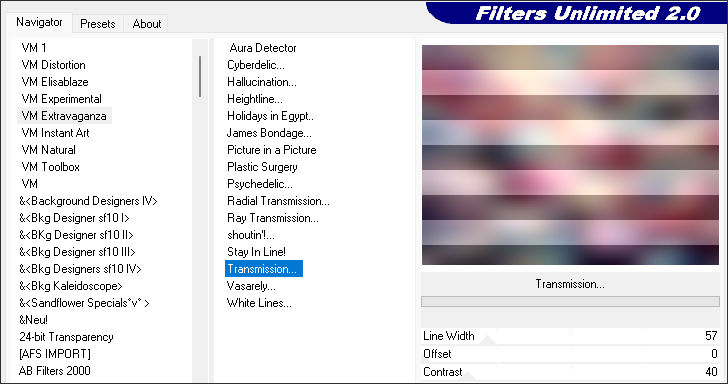 6. Effects / Plugins / Filters Unlimited 2.0 / VM Extravaganza / Transmission: