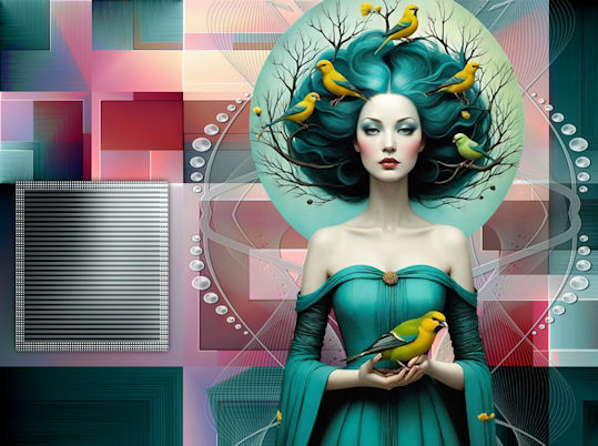 36. Abra o tube « lady_small.png » Copie e cole como nova layerColoque no retângulo menor criado anteriormente