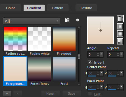 2. Clique no Primeiro Plano em Gradientes... e procure pelo gradiente Primeiro Plano/Fundo (Corel_06_029)...Configure-o como LINEAR e com estas configurações: