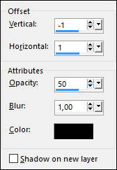 Effects / 3D Effects / Drop Shadow : -1/1/50/1/#000000