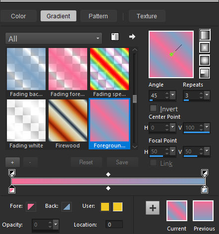Forme no Primeiro Plano um gradiente estilo Linear e configure como segue: