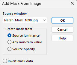 9- Layers / New Raster layer ... Preencha com a cor 4Layers / New Mask layer / From image: “Narah_Mask_1098”