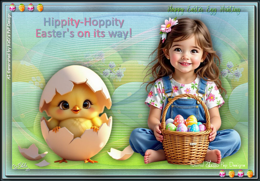 17- Ative e copie : KaD_EasterChicks4 ... Cole como nova layer (Raster 3)Layers / Arrange / Bring to top