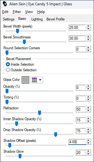 Effects / Plugins / Alien Skin Eye Candy 5 / Impact / Glass: