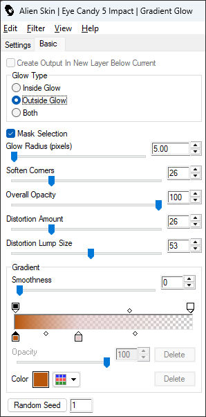 Effects / Plugins / Alien Skin Eye Candy 5 / Impact / Gradient Glow / Cor 4