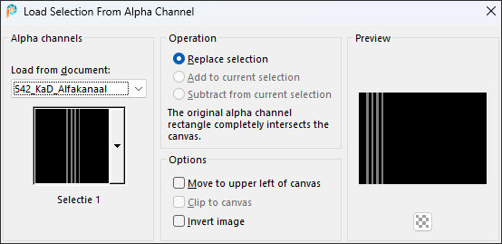 Selections / Load/Save Selection / Load Selection From Alpha Channel: Selectie 1