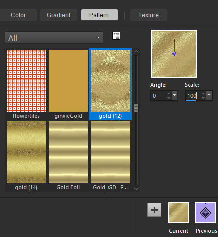 12- Coloque no primeiro plano a Pattern "gold (12)" configure como segue: