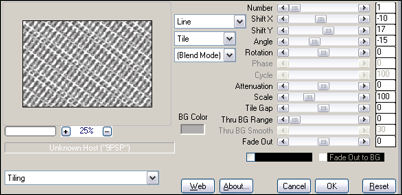 Effects / Plugins / FM Tile Tools / Blend Emboss / Padrão02- Copie o tube vorlage_1.pspimage e cole como nova layer