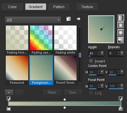 Forme um gradiente LINEAR (Angle 45 / Repeats 0 )