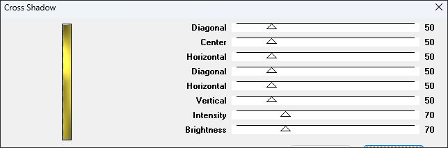 22. Effects / Plugins / Graphic Plus / Cross Shadow... Intensity & Brightness => 70.