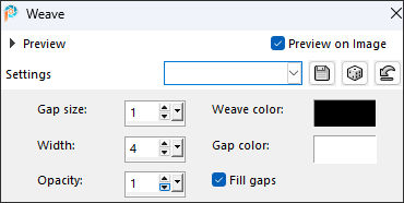 20. Effects / Texture Effects / Weave: Cor #000000 / Cor #ffffff